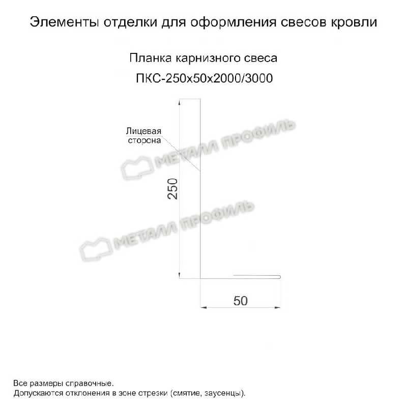 Планка карнизного свеса 250х50х3000 (VikingMP-01-9005-0.45)
