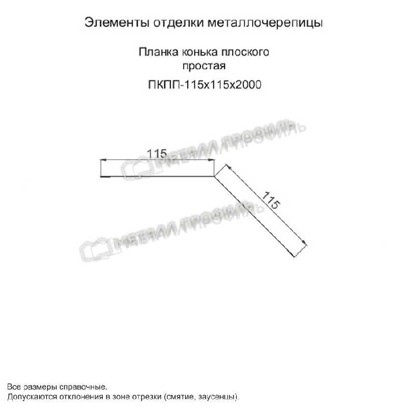 Планка конька плоского простая 115х115х2000 (ПЭ-01-8017-0.45)