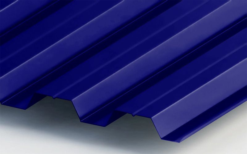Благодаря своей ультрамариново-синей окраске, данный профнастил привлекает внимание и придает зданию стильный и современный вид. Он идеально подходит для кровли, фасадов зданий, заборов и других строительных конструкций.