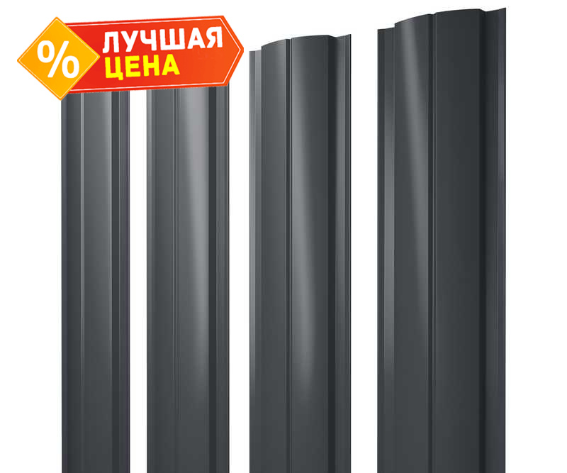 Штакетник Полукруглый Slim Grand Line 0,5 Atlas RAL7024 Мокрый Асфальт