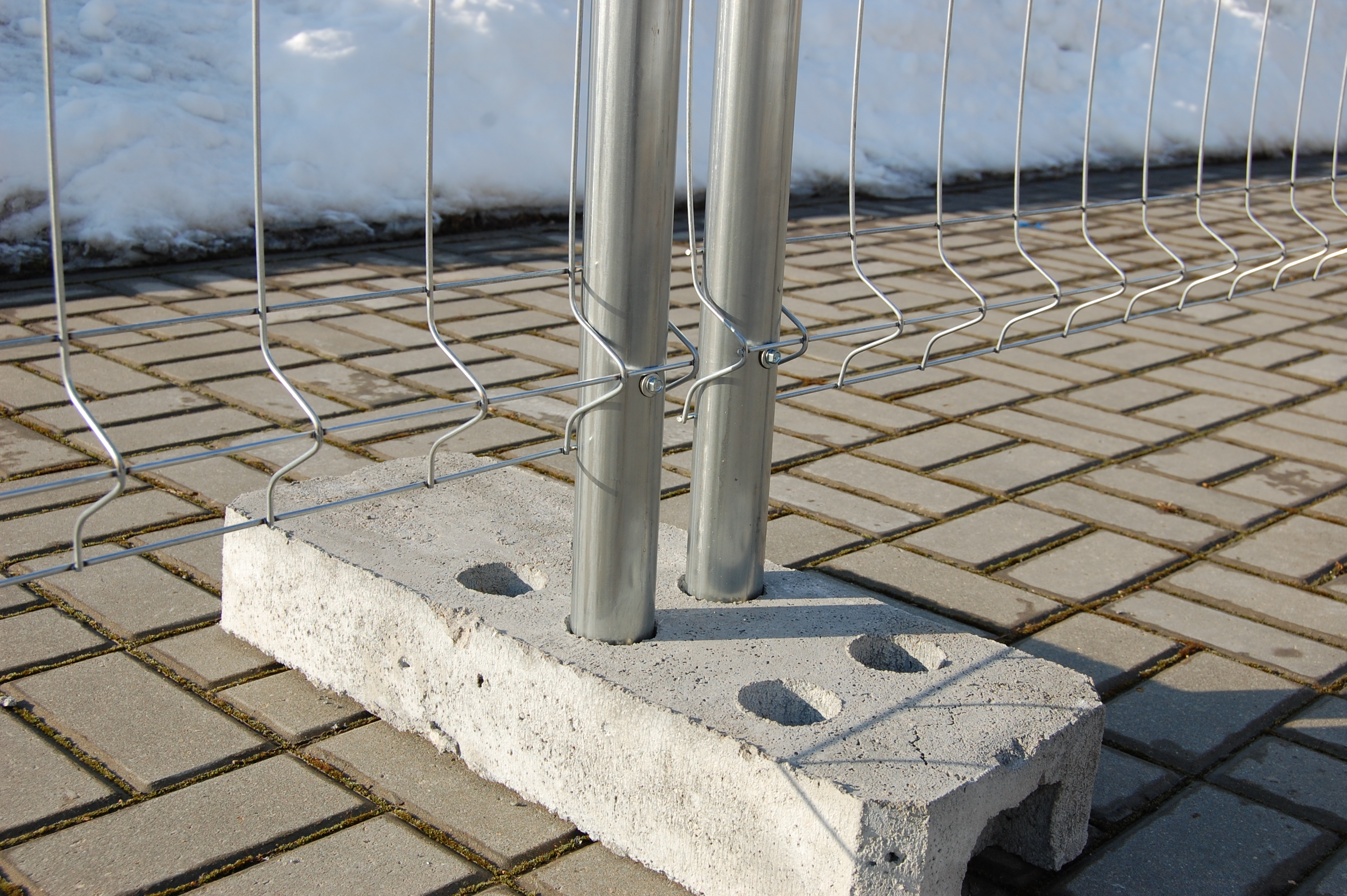 Основание бетонное обеспечивает высокую устойчивость конструкции временного ограждения.